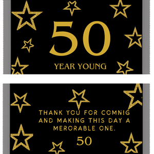 Wrap your favorite chocolate bars in style with our beautiful personalized 50th birthday candy bar wrappers. Designed to match any event theme — from romantic weddings to fun birthdays and elegant baby showers — these full-size wrappers add a personal touch that guests will love. Printed on glossy paper, optional foil edges give that premium, photo-ready shine!