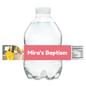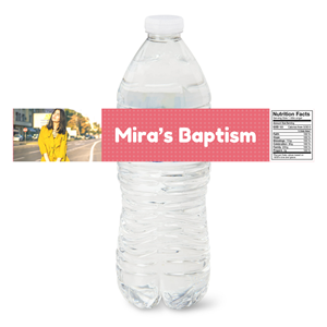The water labels are 1.5” top to bottom x 8.5” left to right. The 8.5” length fits around most bottled water, or other beverage, in sizes of 500mL (16oz.), (8oz) or less.